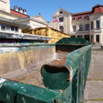 Für die StadtRaumBoxen hat Inken Reinert aus ausrangierten Stühlen, die zum großen Teil noch aus DDR-Produktion stammen, drei „Konstellationen“ in den Vitrinen zusammengestellt. Die Stühle hat sie über Ebay Kleinanzeigen gefunden und einige im Fundus des KulturQuartiers. Allen Stühlen ist gemeinsam, dass sie gelagert beziehungsweise abgestellt waren, also länger nicht mehr für ihren eigentlichen Zweck, dem Sitzen, benutzt wurden. Zudem verbindet diese Sitzmöbel, dass sie eher im Kontext von Veranstaltungen oder der Gastronomie verwendet wurden.