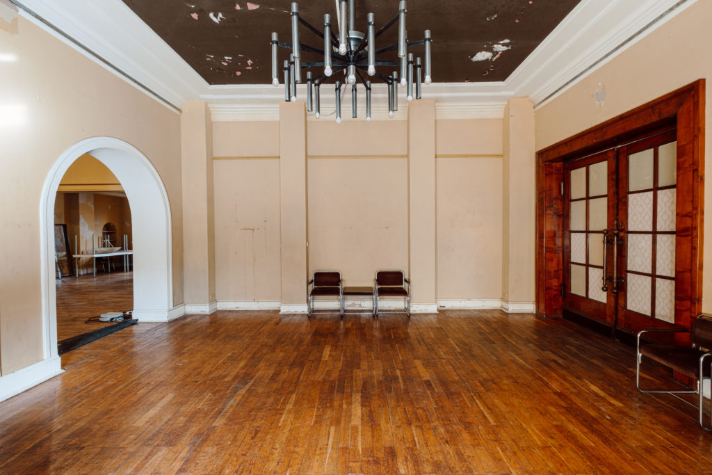 Die Abbrucharbeiten der Firma BAC schreiten voran und haben das Erdgeschoss sowie das erste Obergeschoss erreicht. Die Sanitäranlagen im Erdgeschoss sind nicht mehr sichtbar; stattdessen ist eine große Freifläche erkennbar, die künftig Teil der Gastronomie werden soll. Der helle, großzügige Raum verfügt bereits über neue Fenster der Firma Felsberg. Im ersten Obergeschoss, in den ehemaligen Betriebsbüros des Schauspielhauses, ist sichtbar, dass einige Wände entfernt wurden. Auf dieser Freifläche entsteht einer der neuen Kinosäle für unseren Partner KINOKLUB Erfurt.