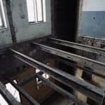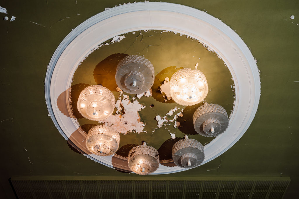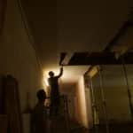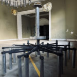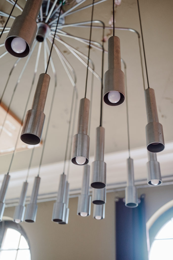 Im Obergeschoss sind die ersten neuen Fenster von Fensterbau Felsberg eingebaut. Im Erdgeschoss wurden die ersten ikonischen 70er Jahre Leuchter abgenommen und in die Werkstatt Stahlbau Egstedt gebracht. Hier werden sie gereinigt und entfettet. Rost und Oxidationen werden entfernt, Brüche verlötet und fehlende Teile ersetzt.