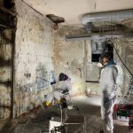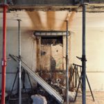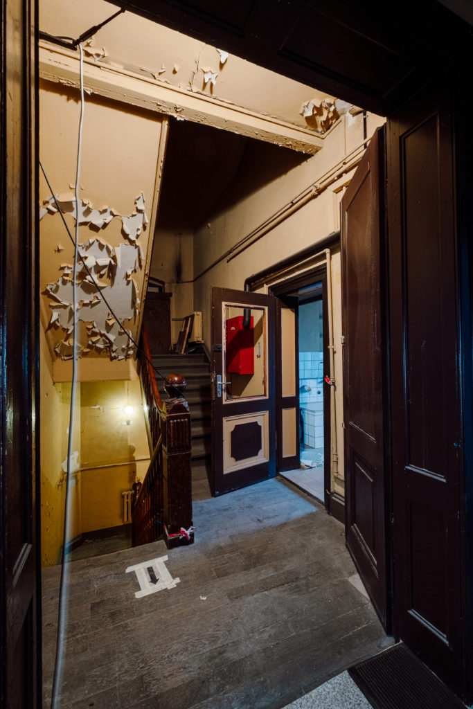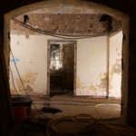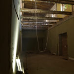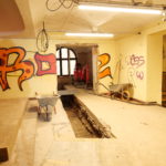 Mit der Aufstellung des Baugerüstes in der Lilienstraße begannen auch die Entkernungs- und Abbrucharbeiten der Firma BAC im Untergeschoss, der ehemaligen Theaterkantine des Schauspielhauses. Dabei wurden die Räume vollständig entkernt, einschließlich der Entfernung sämtlicher Bodenbeläge. Der Putz an den Innenwänden wurde abgebürstet, Lüftungskanäle in den Deckenebenen sowie alte Heizkörper wurden entfernt.