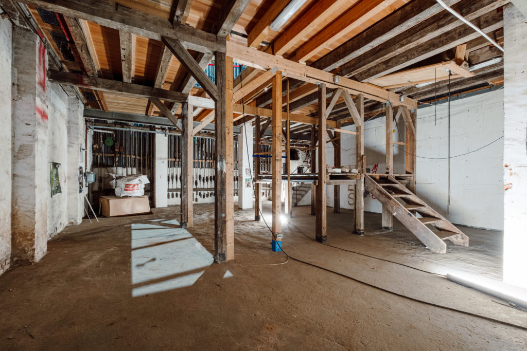 Im Untergeschoss entstehen neue Bodenöffnungen für die Kanäle der zukünftigen Grundleitungen, die sich schon bald durch das gesamte Kellergeschoss ziehen werden. In diesem Zuge wird auch der ehemalige Tresen- und Barbereich des „Unartig“ durch eine Tischlerfirma fachgerecht zurückgebaut, um die Rohbauarbeiten in diesem Abschnitt nahtlos fortsetzen zu können. Ende April werden die Rohbauarbeiten im Basisgeschoss voraussichtlich abgeschlossen sein.