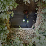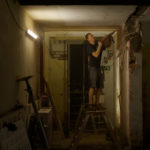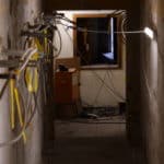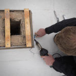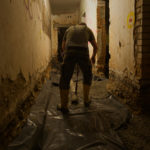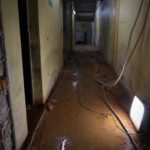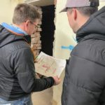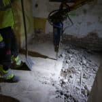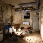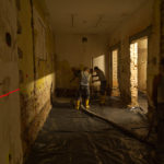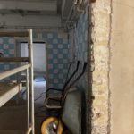 Parallel dazu führt die Firma UlberBau, ein Fachbetrieb für Beton-, Fugen- und Fassadensanierung, Injektionsdichtungsarbeiten im Kellergeschoss durch. Dabei wird PUR-Harz in das Mauerwerk injiziert, um dieses abzudichten. Zunächst werden Bohrlöcher in das Mauerwerk gesetzt, durch die anschließend das Harz unter Druck in die Wand eingebracht wird. Dabei wird das in den Wänden vorhandene Wasser verdrängt.