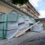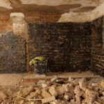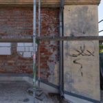 Auch im Bereich vor dem Gebäude schreiten die Tiefbauarbeiten der Firma Prolixbau GmbH weiter voran. Die Deckenplatte wurde zurückgebaut, die darunterliegenden perforierten Betonschichten bis zu den Kellerwänden freigelegt. Anschließend erfolgten Ausmauerungsarbeiten sowie die Grundierung und das Aufbringen einer Sperrschicht, die das Eindringen von Wasser und Feuchtigkeit jeglicher Art zuverlässig verhindert.