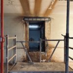 Im künftigen zentralen Erschließungszugang zum Haus (Eingangstreppenbereich und Aufzüge) wurden Decken- und Wanddurchbrüche hergestellt – neue, beeindruckende Raumhöhen sind dabei zum Vorschein gekommen.