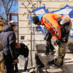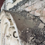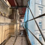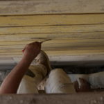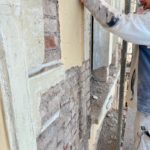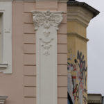 Parallel dazu bereitet die Firma Ehrlich die Fassade für den neuen Putzaufbau vor. Lose Farbschichten wurden per Hand von den Putzflächen und Stuckelementen entfernt – dabei kamen mehrere übereinanderliegende Farbfassungen früherer Jahrzehnte zum Vorschein. Im Anschluss wird die Fassade fachgerecht grundiert.
