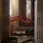 Auch im Inneren des Gebäudes gehen die Arbeiten zügig voran. Die Abbrucharbeiten der Firma BAC haben nun auch das 2. Obergeschoss erreicht. Im zukünftigen kleinen und großen Kinosaal (1. OG) wurden Decken und Zwischenwände entfernt – in Kürze beginnen hier die Ausmauerungsarbeiten, um die Fenster zur Nachbarseite hin zu schließen. Im Bereich der Hinterbühne im Erdgeschoss wurde mit dem Abbruch der Deckenbekleidung begonnen. Durch die Öffnung nach oben entsteht Raum für die weitere bauliche Gestaltung.