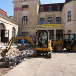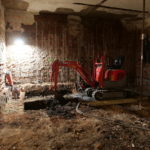 Derweil wird im Untergeschoss der Fußbodenaufbau weiterhin 50cm unter Bestandsfußboden entfernt. Zudem sorgt ERSA-Bau dafür, dass weitere Zwischendecken und Wände weichen, um Platz für die zukünftige Aufzüge zu schaffen, damit unser Haus für alle zugänglich wird. Die Abdichtungsarbeiten von Ulber-Bau gehen in die nächste Phase und zu Beginn der 12 KW starten schon die Tiefbauarbeiten.