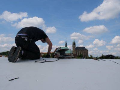 Die Dachabdichtung und Dämmung im Bereich des Bühnenturms sind abgeschlossen. Außerdem wurden Sekuranten (Anschlagpunkte für das Absturzsicherungssystem) montiert. Die sogenannten Sekuranten ermöglichen sicheres Arbeiten auf dem Dach und sind bei Arbeiten in großer Höhe gesetzlich vorgeschrieben.