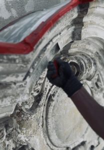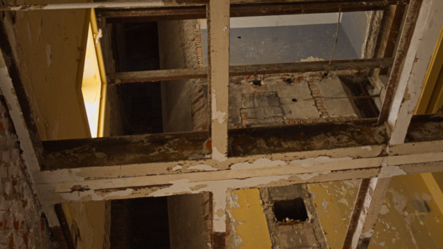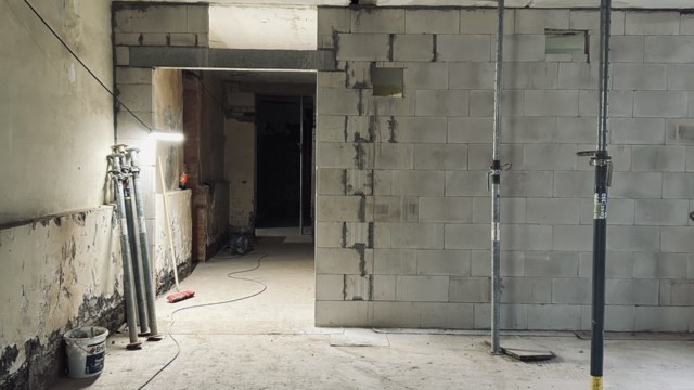 Im künftigen zentralen Erschließungszugang zum Haus (Eingangstreppenbereich und Aufzüge) wurden Decken- und Wanddurchbrüche hergestellt – neue, beeindruckende Raumhöhen sind dabei zum Vorschein gekommen.
