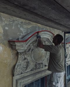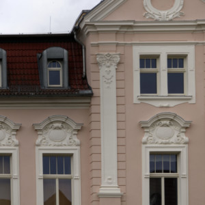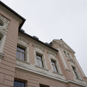 In der Lilienstraße ist die neue (ursprüngliche) Fassadenfarbe zu erkennen – sie schimmert durch das Gerüst. In den nächsten Tagen wird dieses entfernt, und die fertige Fassade mit restauriertem Stuck und Bossierung wird in voller Pracht erstrahlen.
