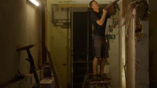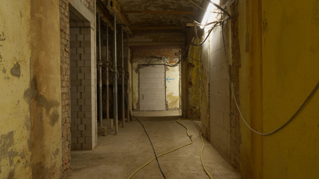 Ähnlich sieht es in den zukünftigen Kinosälen im 1. Obergeschoss aus: Der Bestand wird umfassend für die neue Nutzung als Kinobereich umgebaut. Die Abbruchfirma BAC hat auch hier Zwischendecken, Zwischenwände und Bodenbeläge entfernt.