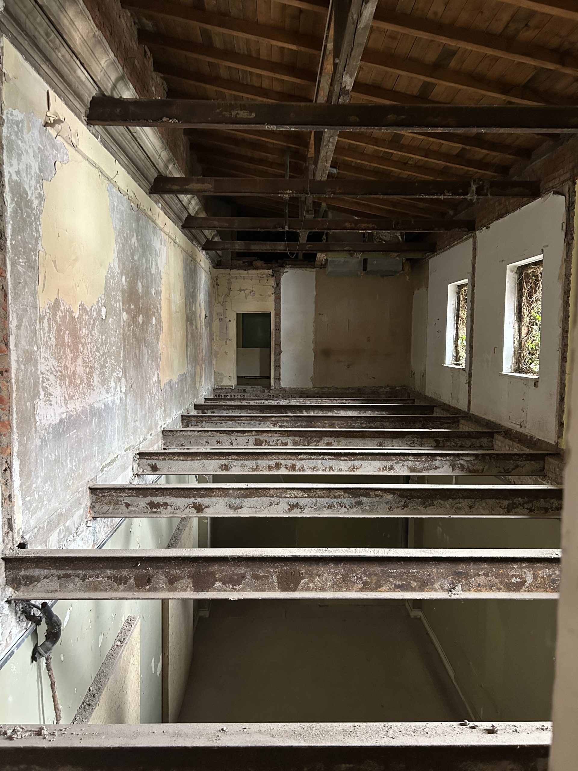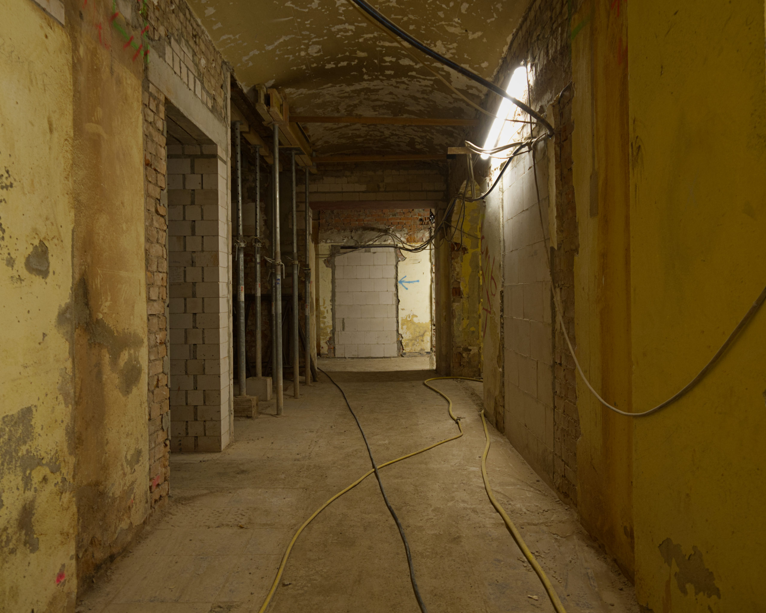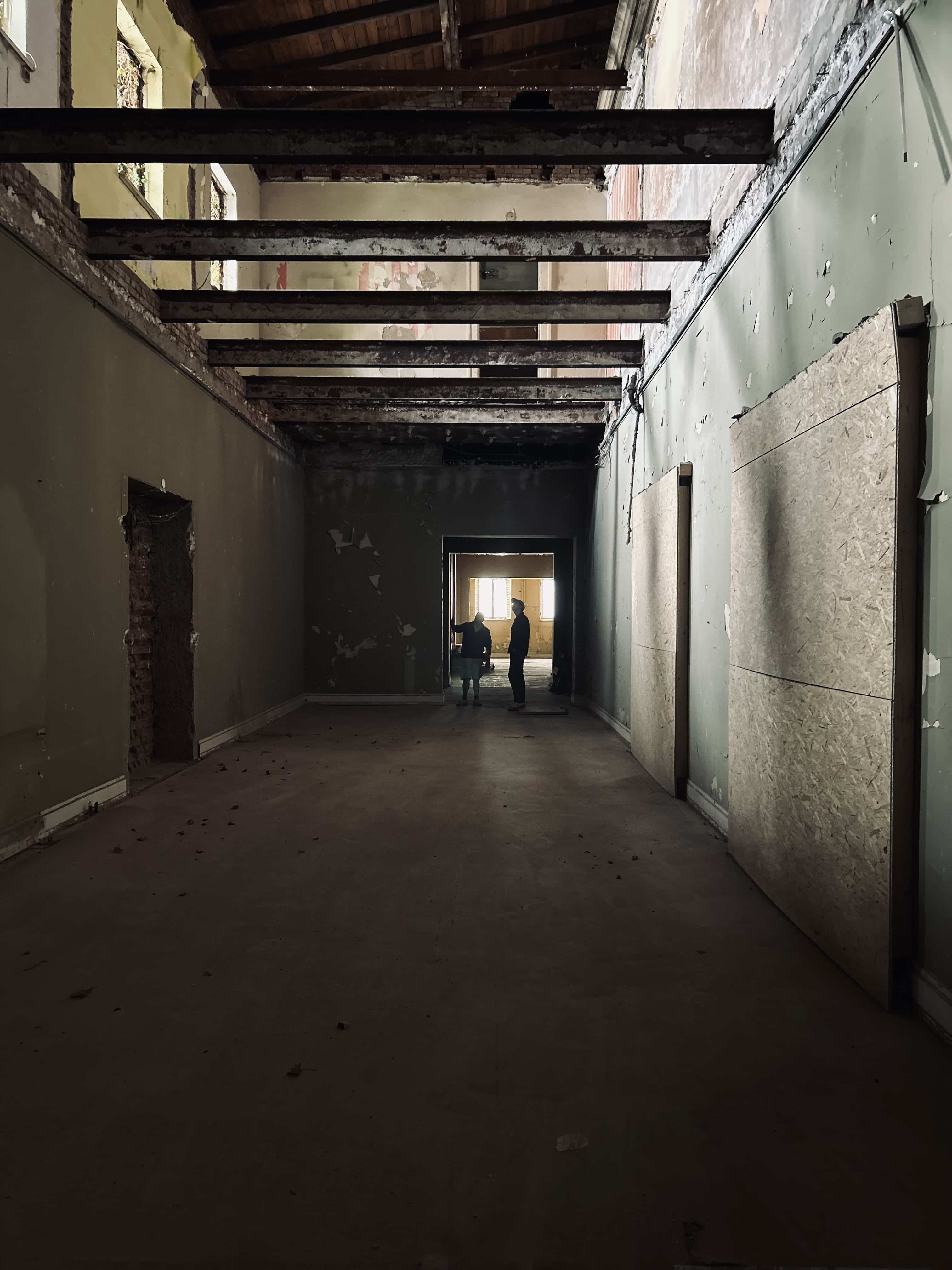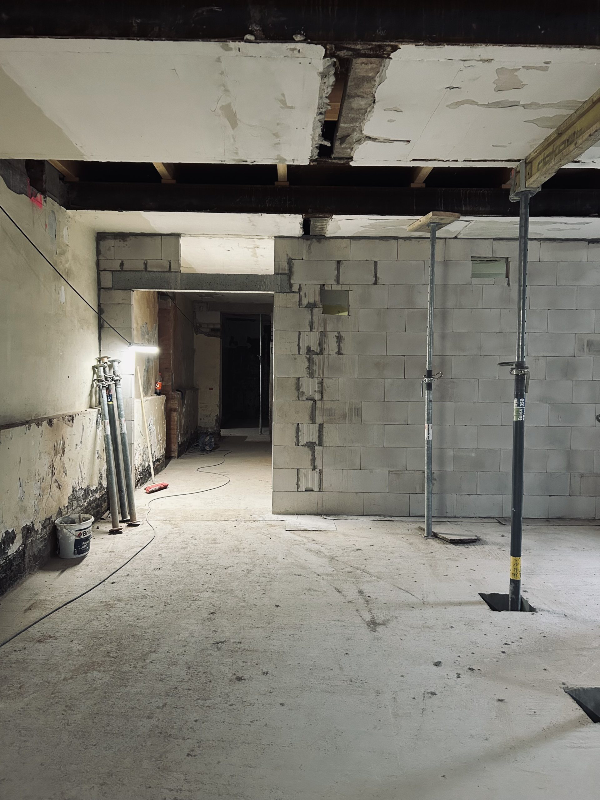 Ähnlich sieht es in den zukünftigen Kinosälen im 1. Obergeschoss aus: Der Bestand wird umfassend für die neue Nutzung als Kinobereich umgebaut. Die Abbruchfirma BAC hat auch hier Zwischendecken, Zwischenwände und Bodenbeläge entfernt.