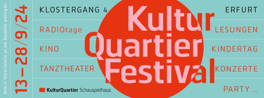 Das KulturQuartierFestival 2024 wird unterstützt von der Stadt Erfurt, der Kulturstiftung des Freistaats Thüringen sowie der Sparkassenstiftung Erfurt.