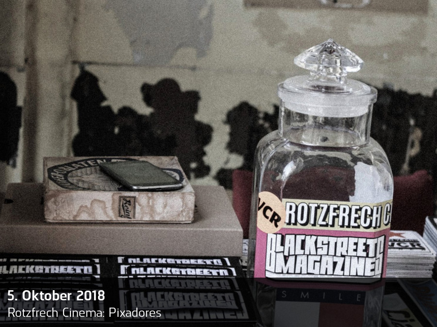 Wir – Rotzfrech Cinema – verstehen uns als unkommerzielles Kino-Projekt. Unser Herz schlägt für Graffiti, die Bewegung und DIY. Kommerz & Co. sind für uns uninteressant. Die gesamte Tour fußt auf dem ehrenamtlichen Engagement vieler Menschen. Dafür ein ganz großes Danke. Wir finanzieren uns ausschließlich über eure freiwillige Spende am Eingang jeder Veranstaltung. Wir glauben daran!