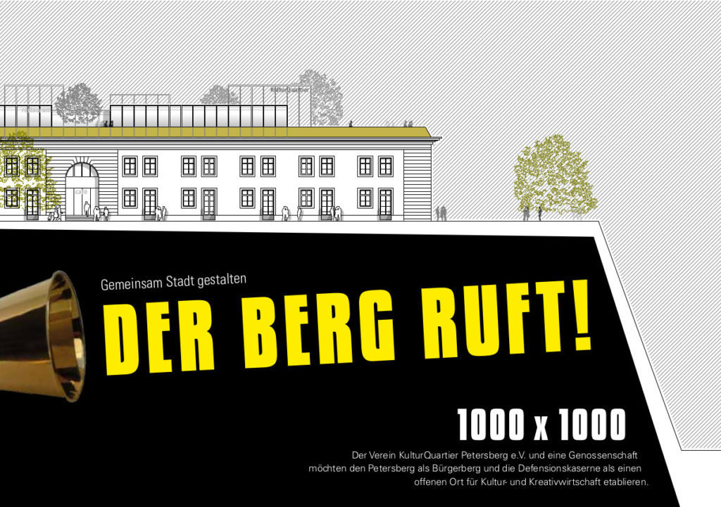 Defensionskaserne sowie die dauerhafte Berücksichtigung und Integration der kreativen Potentiale der Stadt auf dem Petersberg – werben.