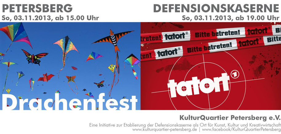 Wir hoffen, dass auch ihr Lust habt, den Petersberg herbstlich zu beleben, die Drachen über der Stadt steigen zu lassen und anschließend gemeinsam den Erfurter TATORT in einem der Drehorte zu schauen.