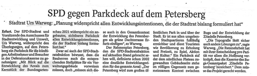 Widerstand gegen Parkdeck für Verwaltungsbau auf dem Petersberg (TA/TLZ 02.04. 15)
